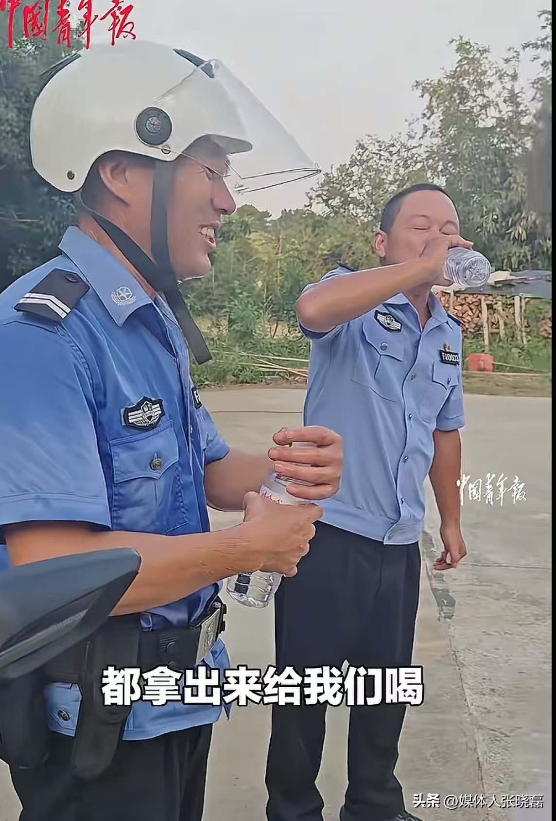 老人看着他们满头大汗的样子,想起家里有孩子给自己买的矿泉水,自己一直舍不得喝,连忙小跑着回屋,把水拿了出来,递给李涛他们,嘴里不停地说着:“快喝点水,解解渴,谢谢你们,真是太谢谢你们了……”