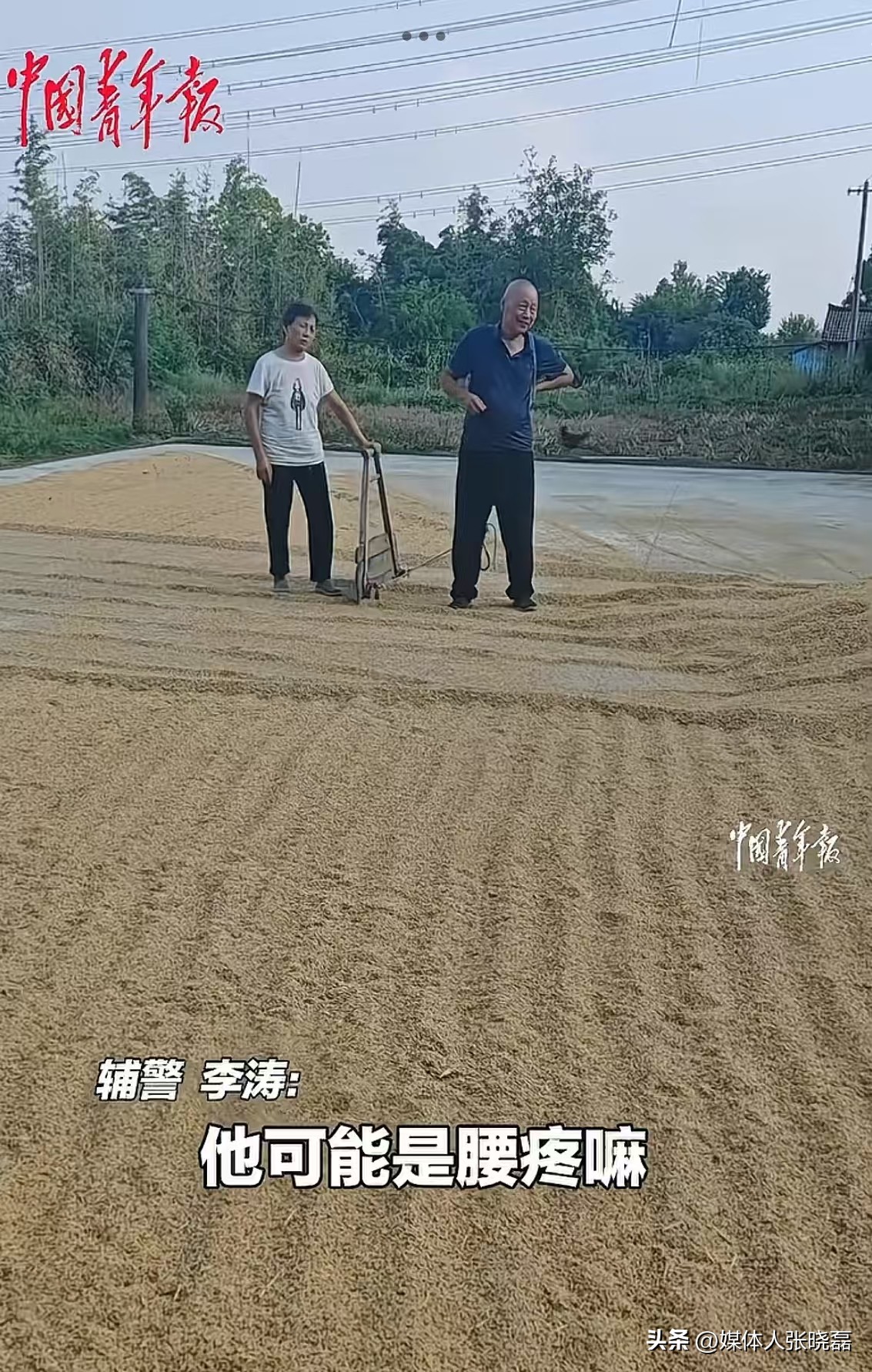 这天,辅警李涛和同事骑着车在村里巡逻。当他们路过一间农房时,看到两位老人正吃力地在院子里收着稻谷。