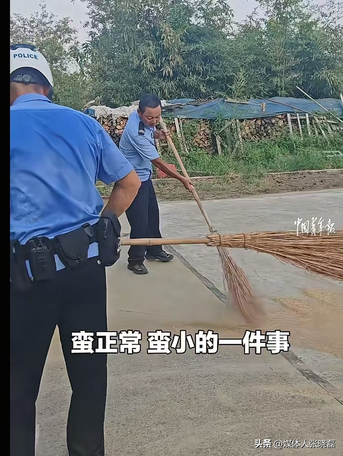 “这群辅警火到中国青年报!”湖北荆门,辅警巡逻时,看到两名七旬老人在院子里吃力地收稻谷,而暴雨马上要来临!他们主动上去帮忙,把老人感动的都快哭了!网友:什么是人民警察?这两个就是为人民服务的警察!