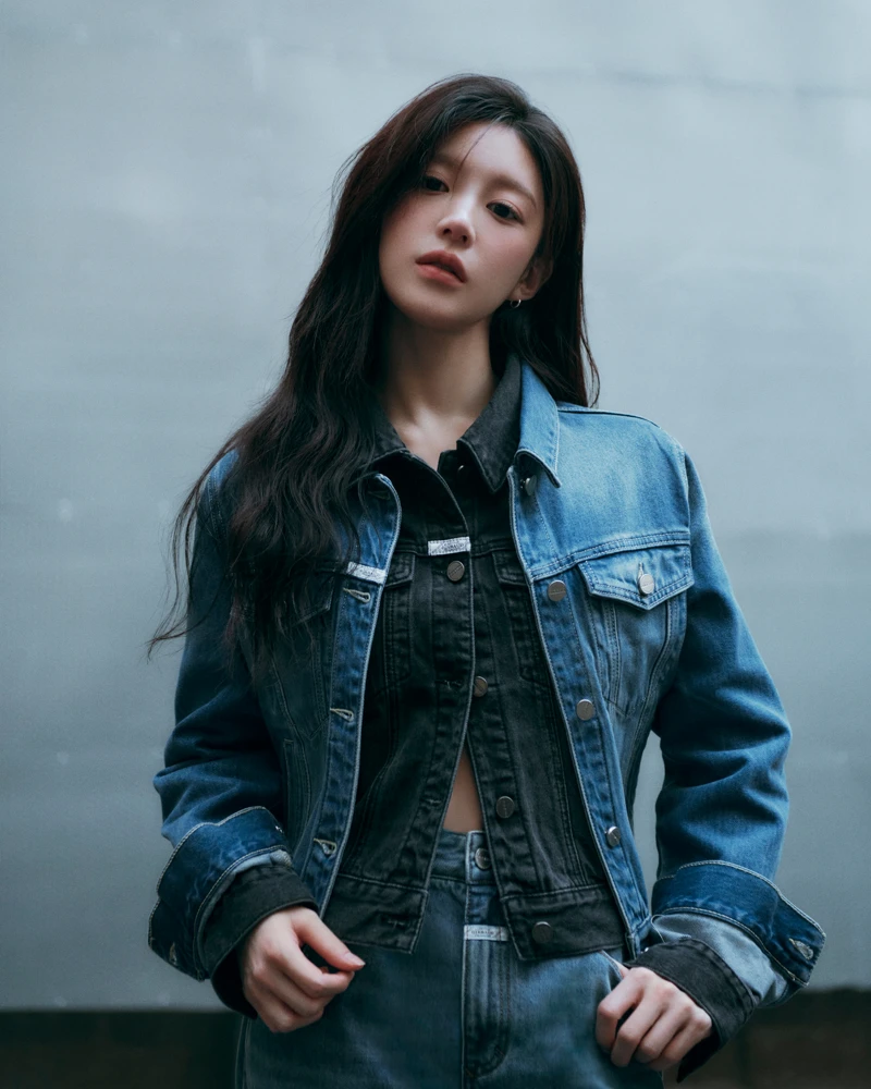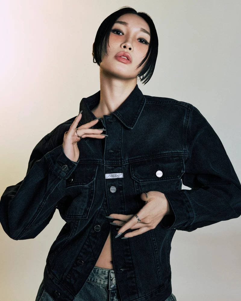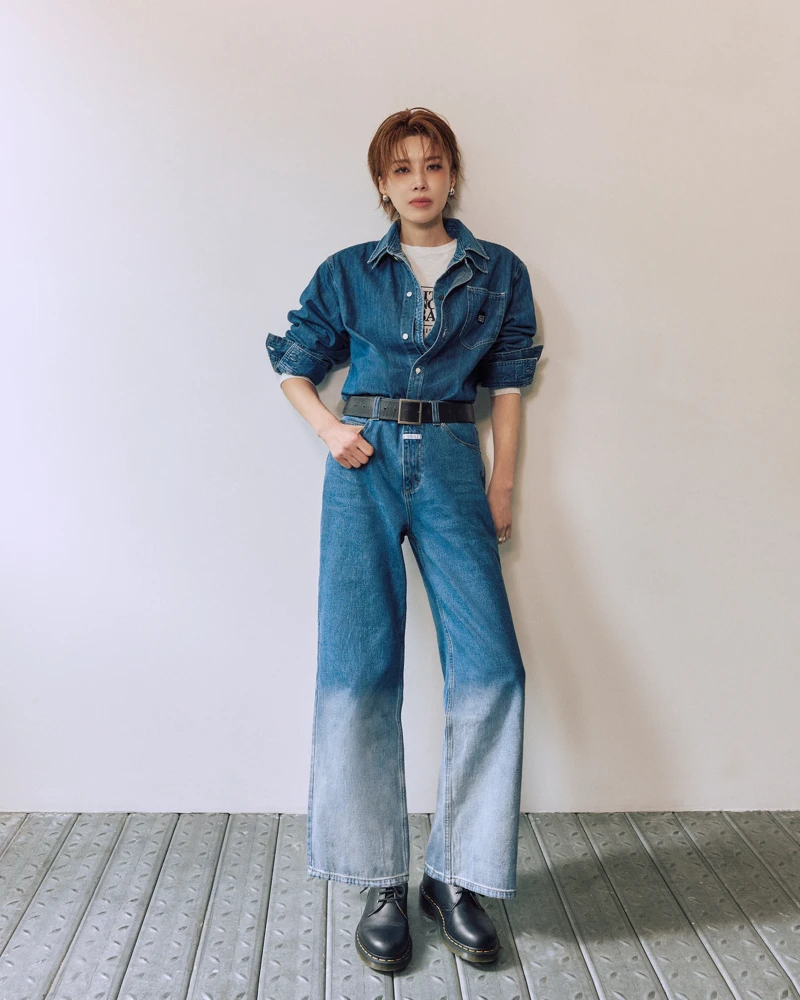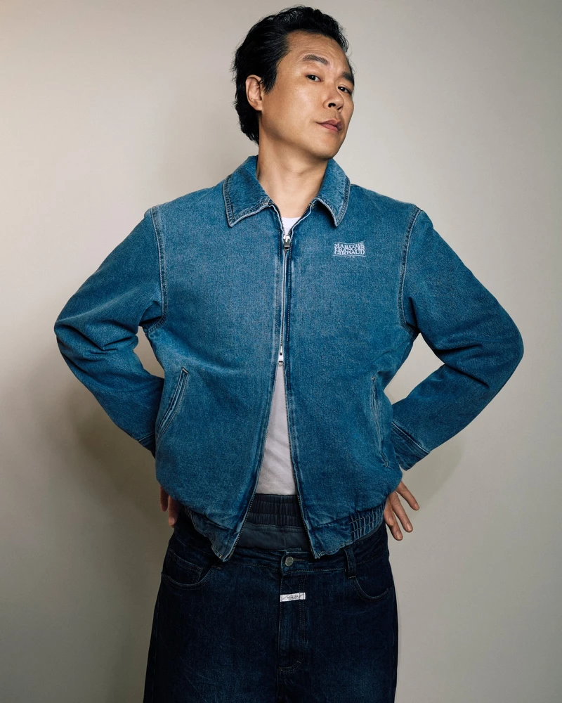 歌手 Roy Kim 则以一袭 oversized 丹宁外套亮相,透过不对称设计打造洒脱轮廓,呈现自由与放鬆的氛围。造型中带有音乐人特有的随性魅力,呼应品牌一贯的反骨精神。他以极简语言展现生活态度,体现丹宁不仅是服装,更是一种内在自我的延伸