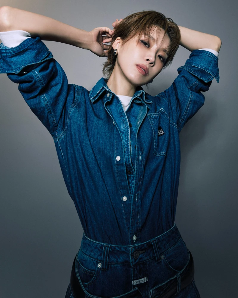作为韩国代表性的世界级舞者,LIP J 一直以中性魅力与强烈个人风格闻名。此次她以品牌中性系列登场,穿上丹宁外套与宽版牛仔裤,以极简线条展现肢体能量。除此之外,他更将舞者的姿态融入丹宁语彙,透过肢体语言传达 M+FG 一贯的自由灵魂与性别流动美学,呈现出动静皆型的现代力量感。
