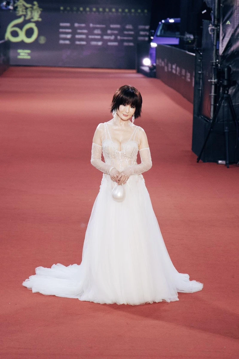 76岁的潘迎紫稍早以一身白色马甲礼服、俏皮一刀切短髮亮相红毯,冻龄美貌惊艳全场!在接受红毯访问时,潘迎紫和大家分享:再次让大家见识到不老女皇的风华。