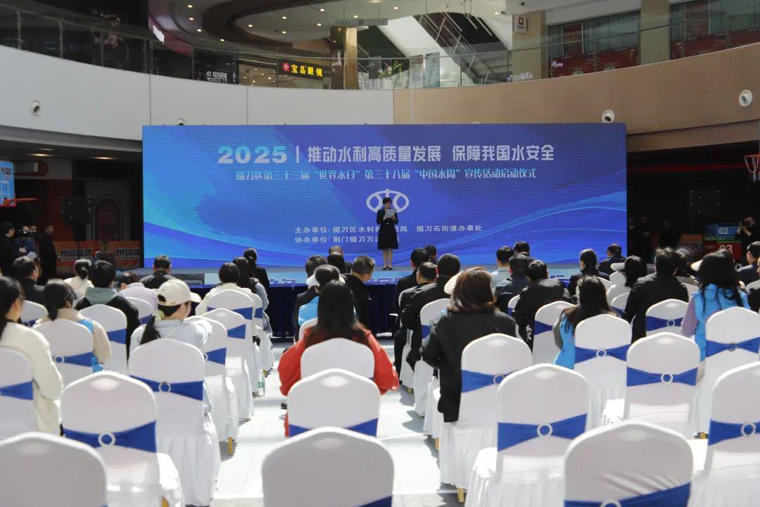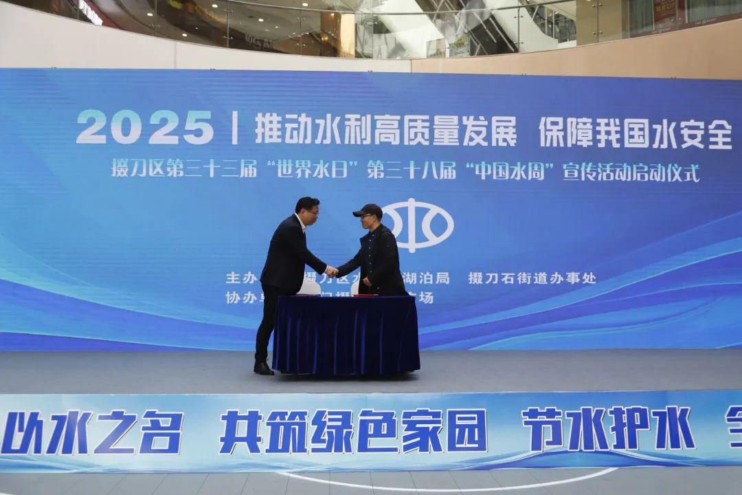 今年3月22日是第33届“世界水日”,3月22日至28日是第38届“中国水周”。今年活动主题为“推动水利高质量发展,保障我国水安全”。在荆门市掇刀区2025年“世界水日”“中国水周”宣传活动现场,掇刀区水利和湖泊局负责人宣读了全区45家“节水型单位”名单。名泉小学“小小水卫士”宣讲小分队代表分享了身边节水小故事。区水利和湖泊局与荆门市河湖保护志愿者协会签订了河湖保护合同。活动现场通过知识问答、海报展示、发放宣传资料及宣传品等形式,向广大群众广泛宣传涉水法规、普及水法规知识。活动结束后,参会代表还前往荆门市格林美新材料有限公司参观大型节水型系统。