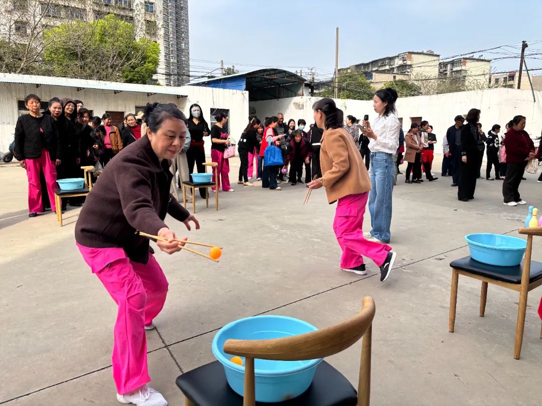 紧接着,趣味运动会正式开始。本次运动会共设置了五项趣味运动项目,包括“桃花朵朵开”、“快乐套圈圈”、“趣味投壶”、“趣味保龄球”以及“夹乒乓球”。这些项目不仅考验了居民们的身体协调性和灵活性,更在轻松愉快的氛围中增进了邻里之间的感情。居民们积极参与,互相鼓励,现场气氛热烈而温馨。